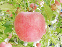 「ふじ」の無袋栽培「サンふじ」は、見た目は荒削りだが太陽(サン)の光を充分に浴びて育つため、一段と濃厚な味わいである。
